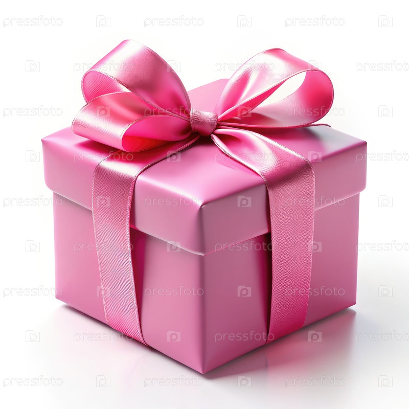 Красиво упакованная розовая подарочная коробка с лентой и стандартной шкалой для отсчета размеров