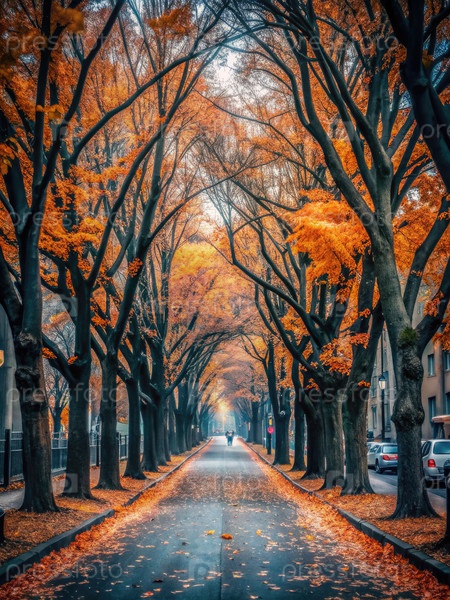 Тихая осенняя прогулка по улице с деревьями и яркими цветами