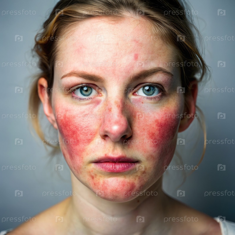 Женщина с розацеей, демонстрирующая выраженность на стандартной шкале RZ в помещении