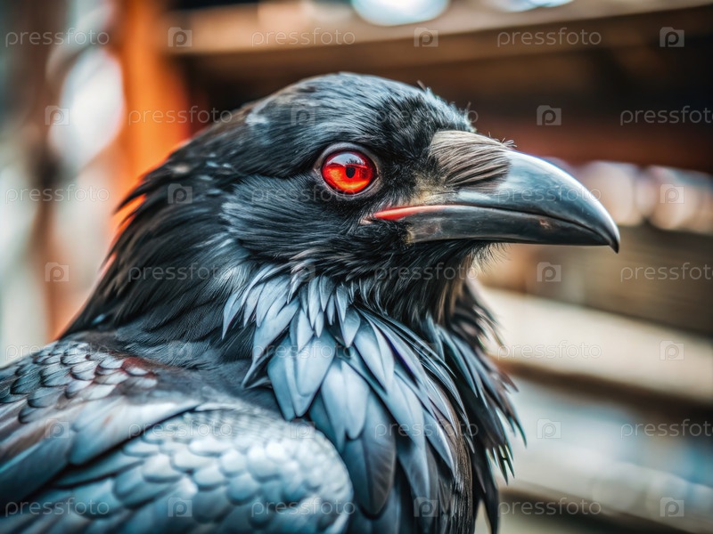 Ворон с ярко-красными глазами сидит в естественной среде обитания в дневное время