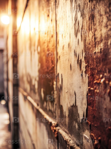 Близкий взгляд на текстурированную стену с темным фоном и запятнавшимися деталями