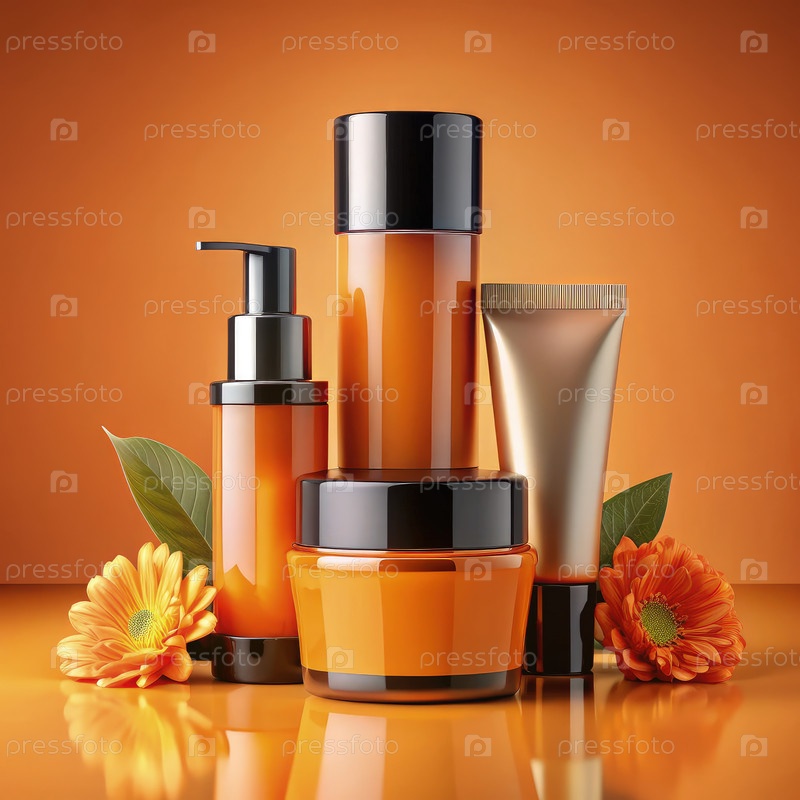 Элегантное отображение оранжевых и черных средств по уходу за красотой с цветочными акцентами
