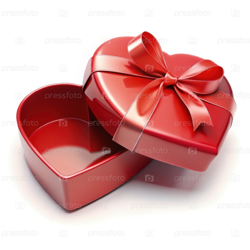 Открыть красную подарочную коробку в форме сердца на белом фоне для особых случаев