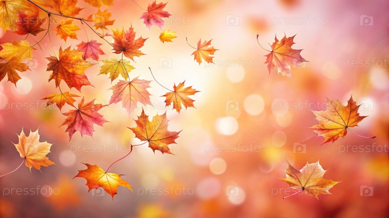 Падающие осенние листья создают яркий дисплей на мягком розовом фоне