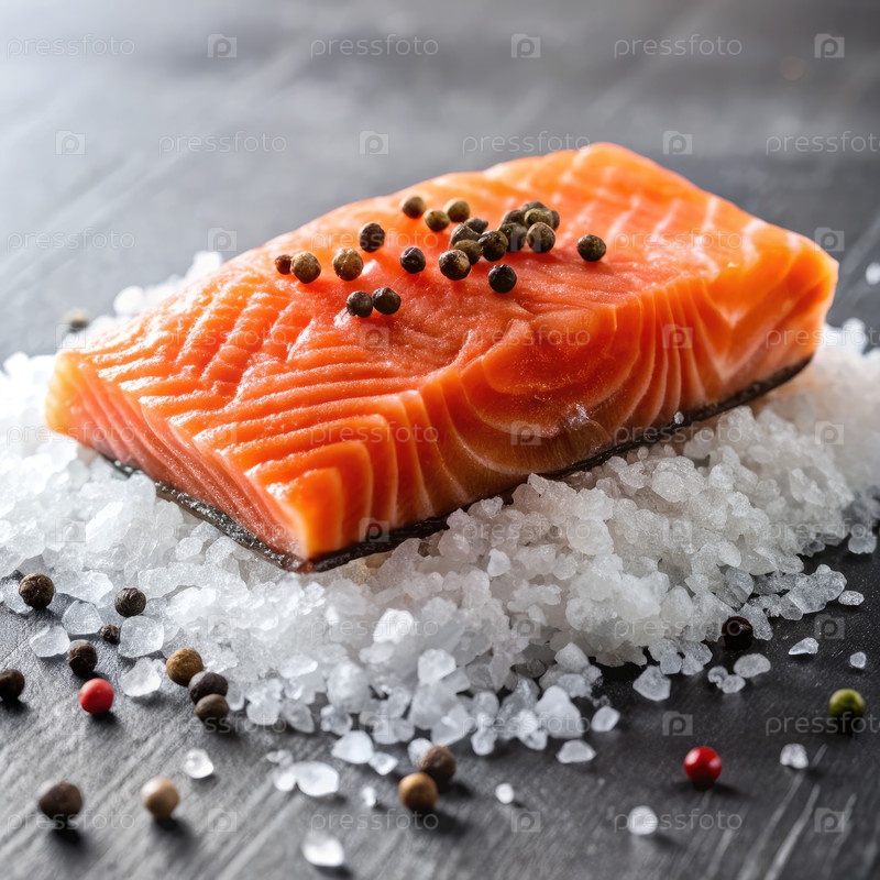 Филе из яркой красной рыбы тщательно помещается на весы, посыпается черной солью для приправы