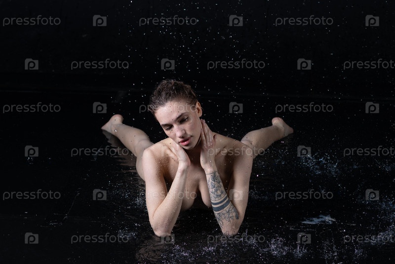 Молодая красивая женщина позирует в нижнем белье в студии