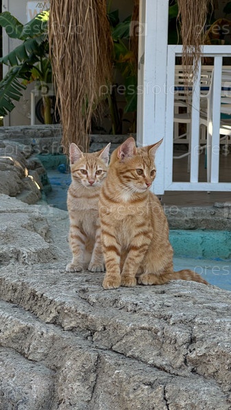Рыжие полосатые котята у бассейна в отеле в Турции