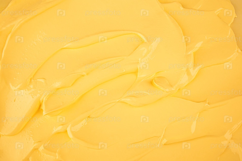 Образец красивых штрихов желтого банана, лимонного кондитерского крема на сливке. Деликатная текстура битой смеси для кондитерских изделий, выпечки