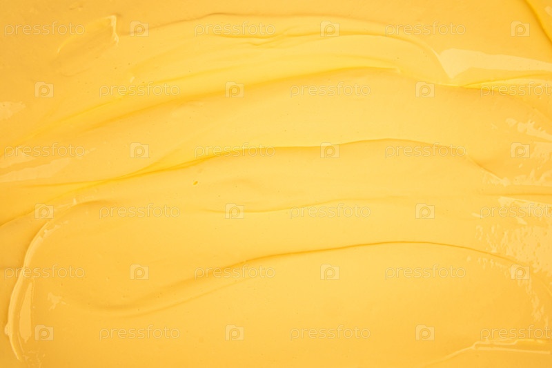 Образец текстуры тонкого желтого бананового сливочного крема.Мягкие волны кремовой поверхности фруктового бананного слива для выпечки кондитерских изделий.Вид сверху.Пространство копирования