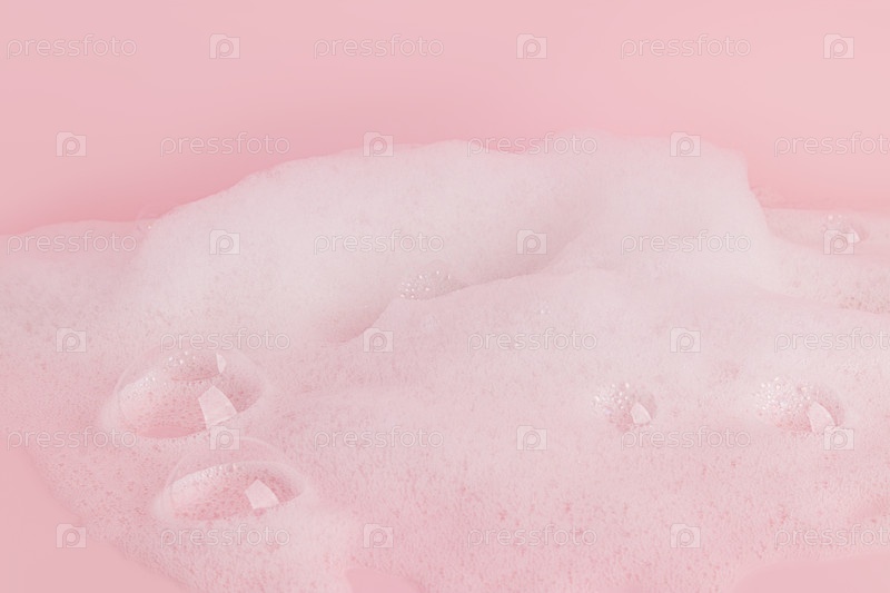 Мягкие пушистые волны белой мыльной пены с пузырями на розовом фоне. текстура косметического продукта, моющего средства. вид спереди. копировальное пространство