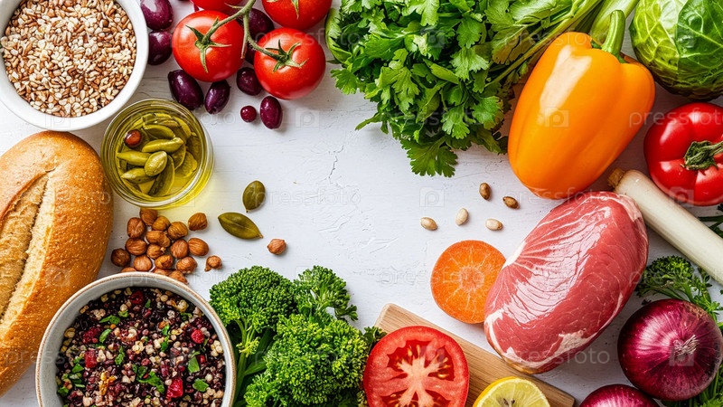 Диета, здоровая еда: концепция правильного питания — питательные продукты на светлом фоне