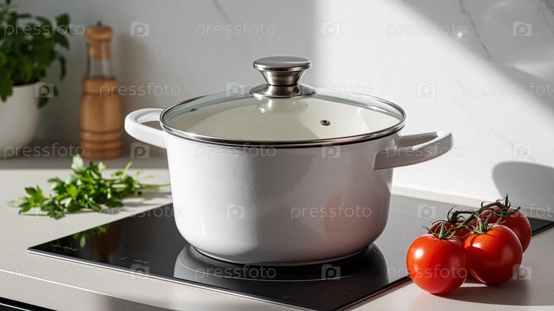Кастрюля на электрической плите на кухне, крупный план