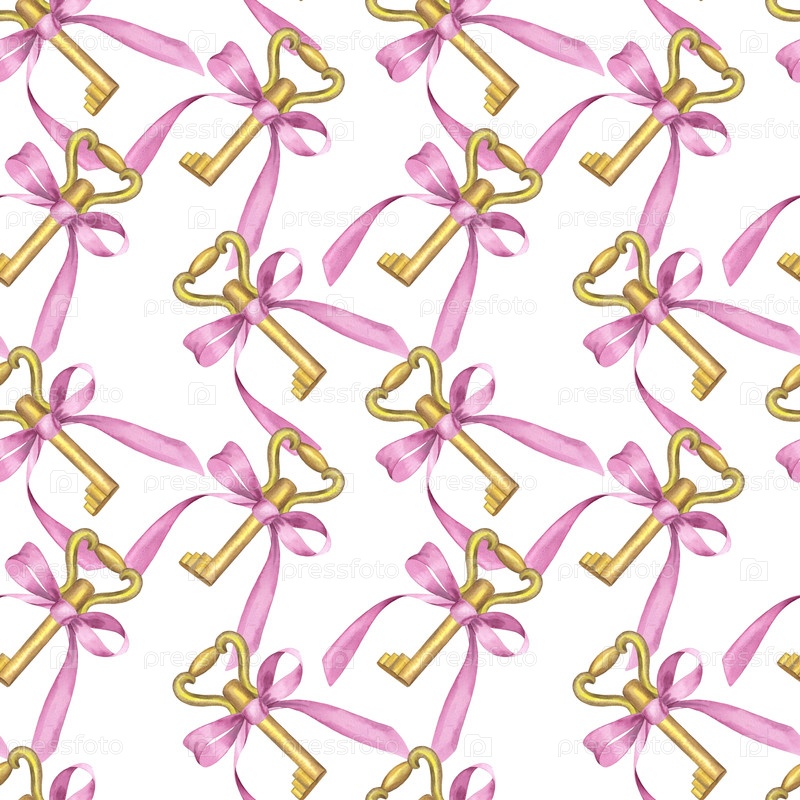 Бесшовный рисунок ключа с луком. иллюстрация ручной акварели. для дизайна упаковки, карточек, обложки, печати, этикеток на продуктах и ткани