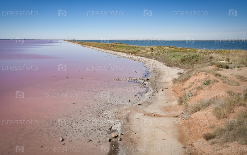 Розовое, соленое озеро Сасык-Сиваш в Крыму