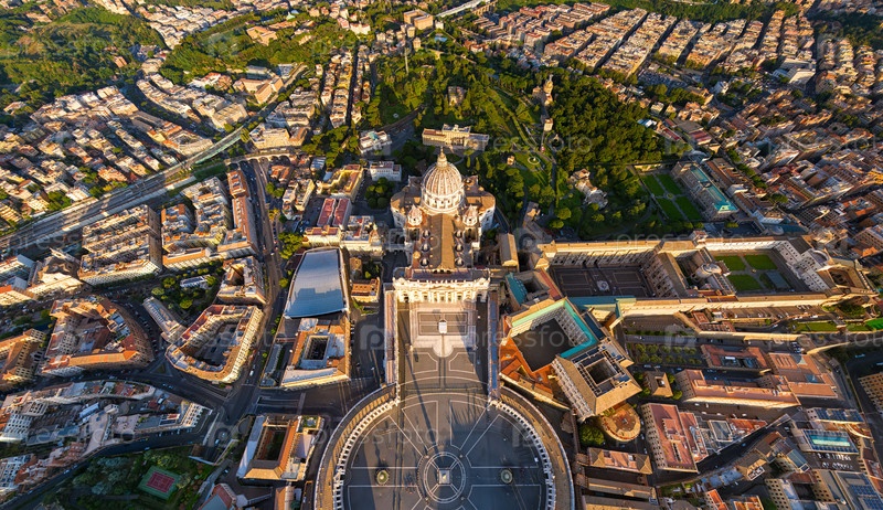 Рим, Италия. собор святого Петра - базилика Сан-Петро. панорама города летом утром. солнечная погода. вид с воздуха