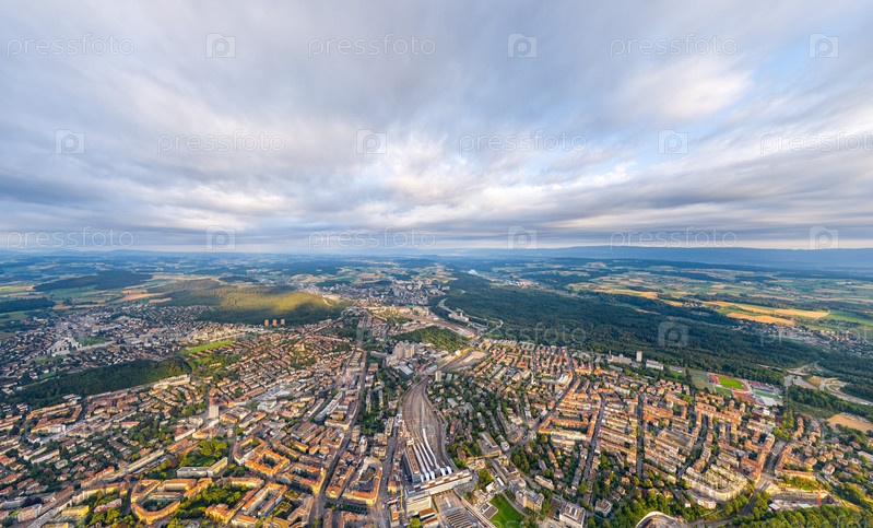 Берн, Швейцария.Панорама города в пасмурную погоду.Солнечные лучи.Летнее утро.Вид с воздуха