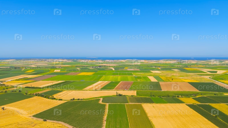 Окружающие древний город Тройские сельскохозяйственные поля и Дарданелльский пролив на расстоянии в летний день