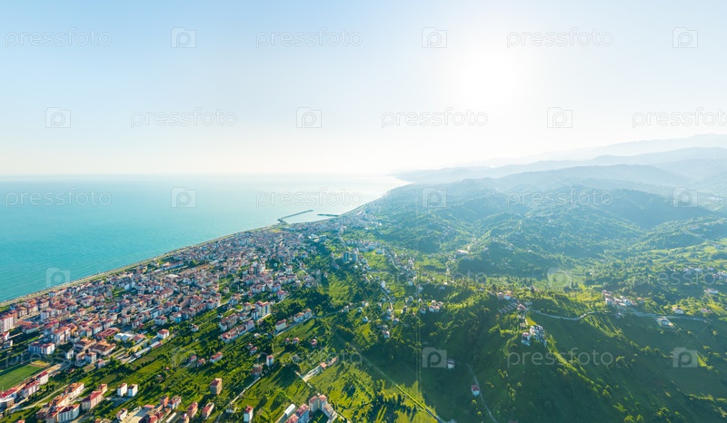 Ардешен, Турция Город на побережье Черного моря в Турции Летнее солнечное утро Панорама Вид с воздуха