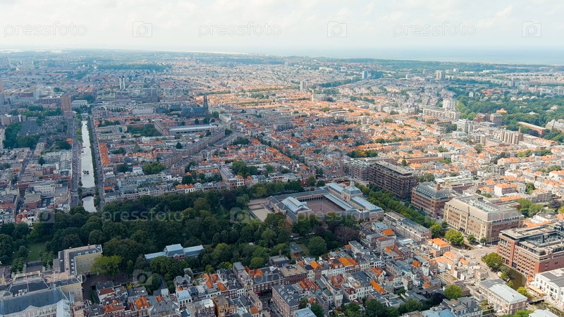 Гаага, Нидерланды. Королевские конюшни. Палестуин - парк. Облачная погода. Летний день, Aerial View