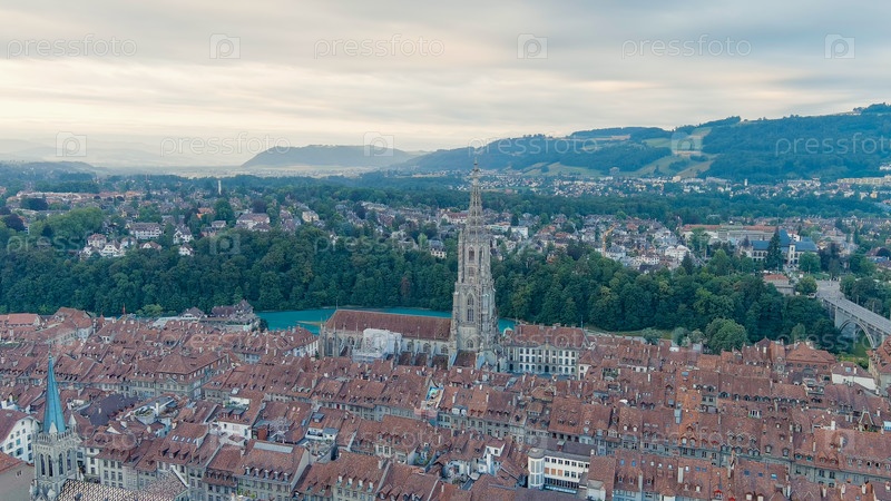 Берн, Швейцария.Бернский собор.Панорама города с видом на исторический центр.Летнее утро, Aerial View