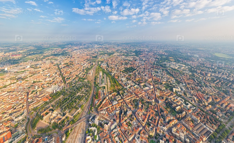 Милан, Италия Панорама центральной части города Летний облачный день Вид с воздуха