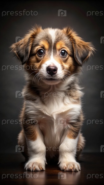 Очаровательный портрет щенка с выразительными глазами на темном фоне