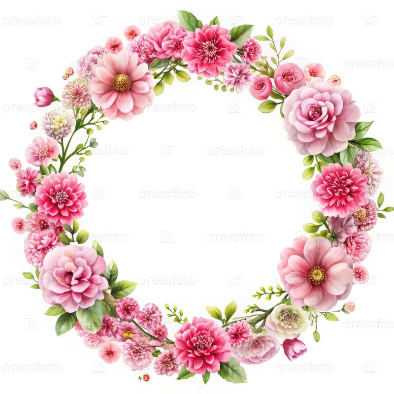 Круглая цветовая рама, украшенная розовыми цветами на белом фоне