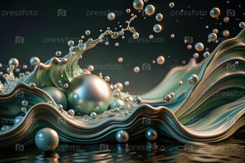 Элегантные океанские волны, демонстрирующие радужные жемчужины и пузыри в спокойных водах