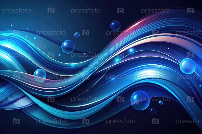 Элегантный темно-синий абстрактный фон с текущими волнами и пузырями в движении