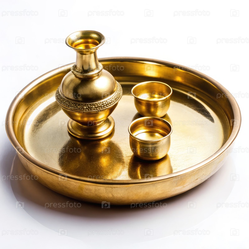 Традиционная латунная тарелка с декоративным кувшином и чашами для богослужебных ритуалов