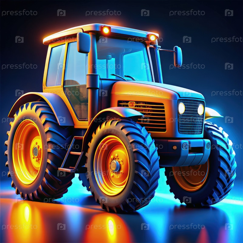 Мини-модель трактора с ярким освещением на отражающей поверхности