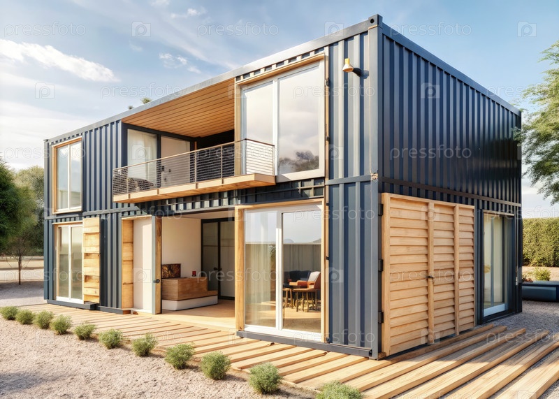 Современный дизайн контейнерного дома в стандартном масштабе с наружным пространством
