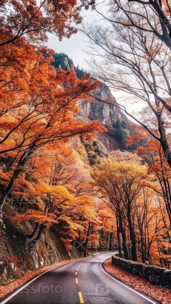 Красивая осенняя дорога, извивающаяся через красочный горный пейзаж