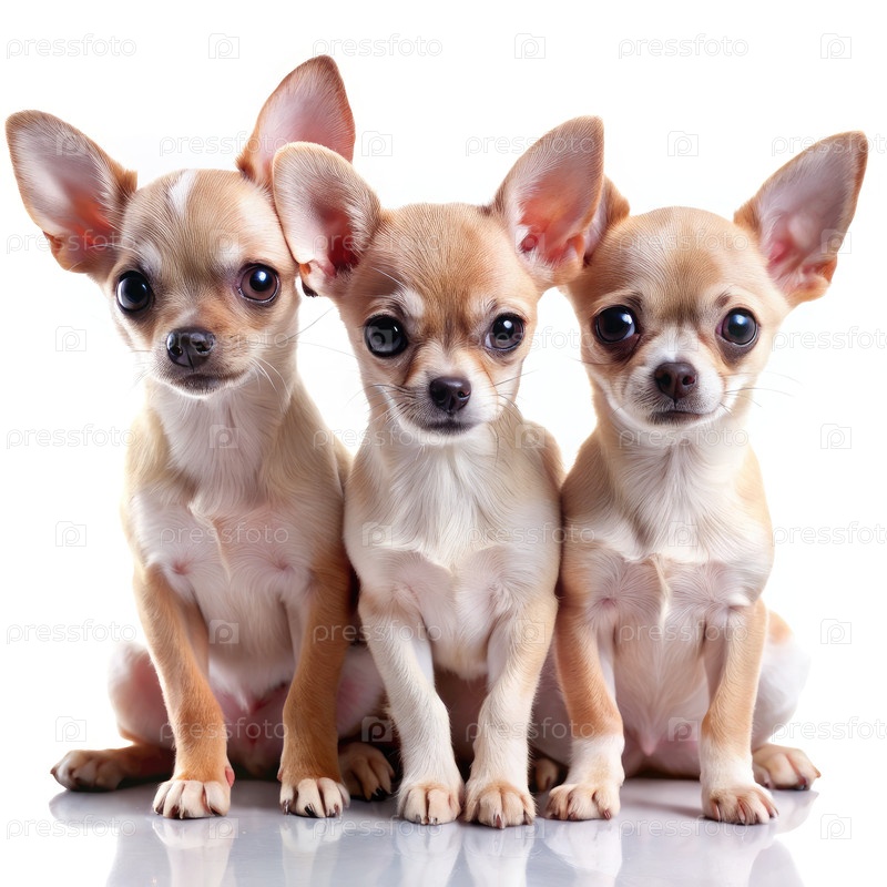 Три очаровательных щенка чихуахуа, изображенные в стандартной шкале на белом фоне