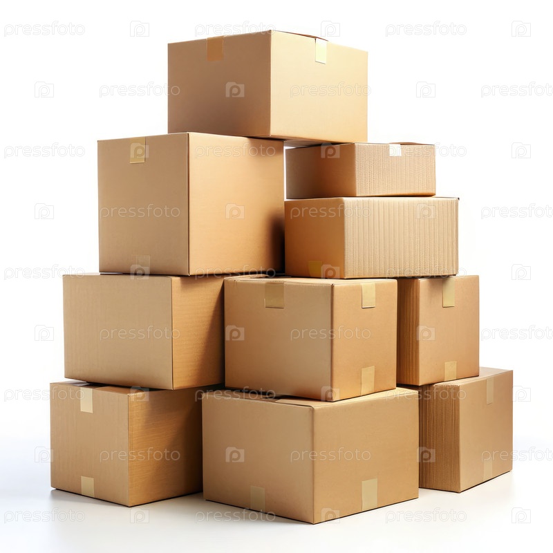 Складываются картонные коробки, расположенные по стандартной шкале на белом фоне