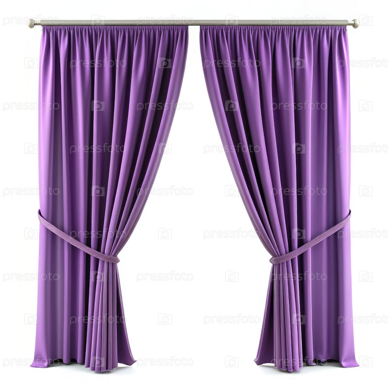 Плавающие фиолетовые шторы, изящно драпированные на белом фоне