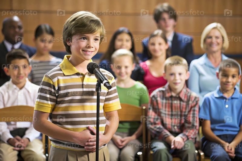 Ученик участвует в соревнованиях по орфографии в школьной аудитории