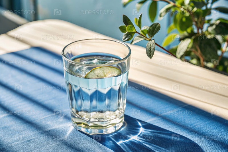 Освежающий стакан холодной воды с лаймом в яркий солнечный день