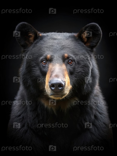Близкий план черного медведя на темном фоне, демонстрирующий его особенности