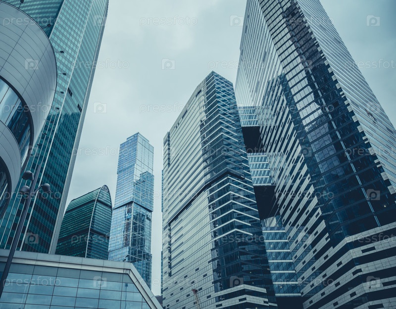 Москва, Россия - 13 сентября 2016 года: Современные стеклянные небоскребы в бизнес-центре