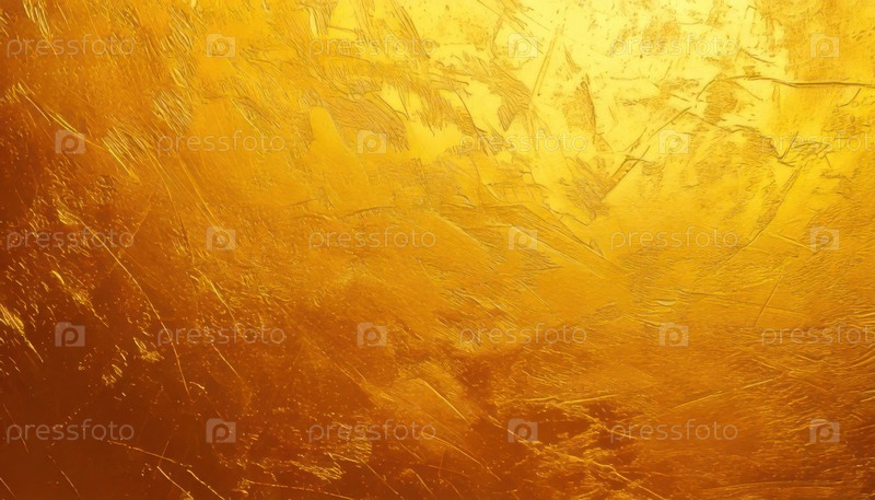 Абстрактный золотистый фон с царапиной металлической текстурой и теплым светящимся светом, отражающим неровные поверхности золотой фольги
