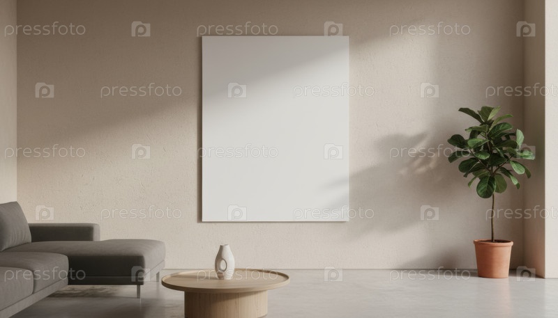 Спокойный минималистский интерьер с большим пустым холстом приглашает к творческому самовыражению художественную концепцию развития дизайна дома вдохновение и современное эстетическое созерцание