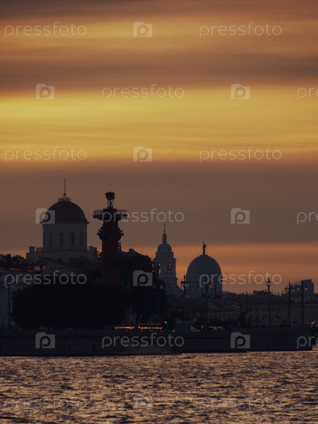 Закат. Ростральные колонны. Соборы. Санкт-Петербург
