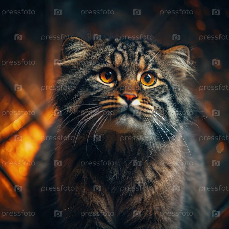 Красивый мануль задумчиво смотрит на яркий фон