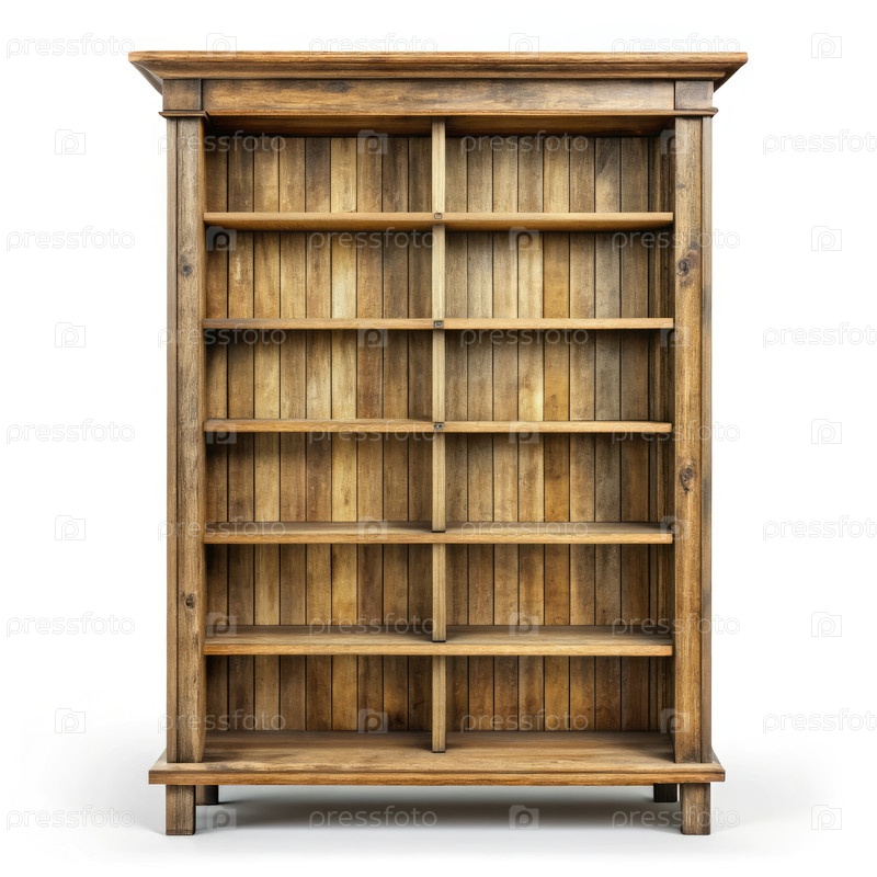 Деревянная книжная полка на белом фоне готова к украшению или организации