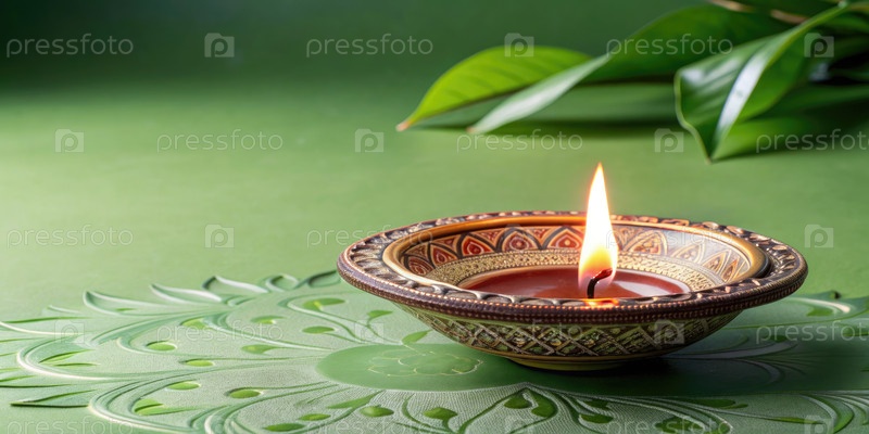 Традиционная масляная лампа, освещающая зеленую поверхность с декоративными узорами