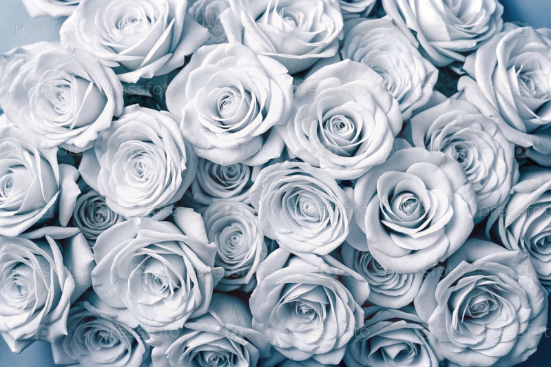 Белые розы красиво расположены на мягком серо-розовом фоне в стандартной шкале