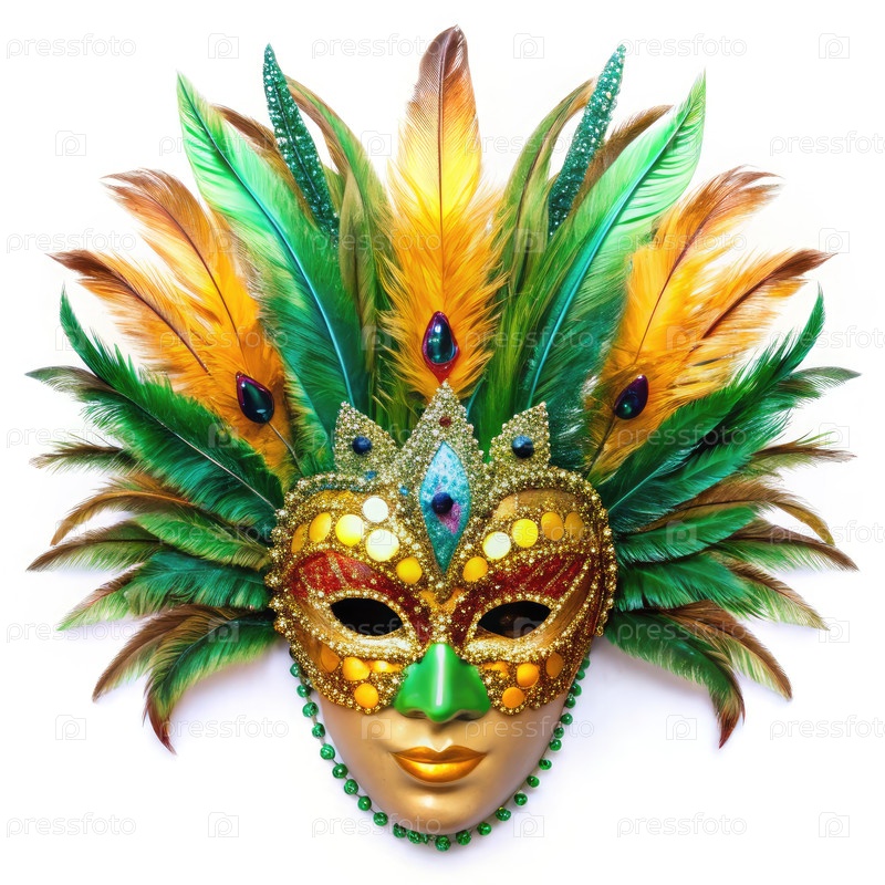Вибрирующая бразильская карнавальная маска с перьями и украшениями из драгоценных камней