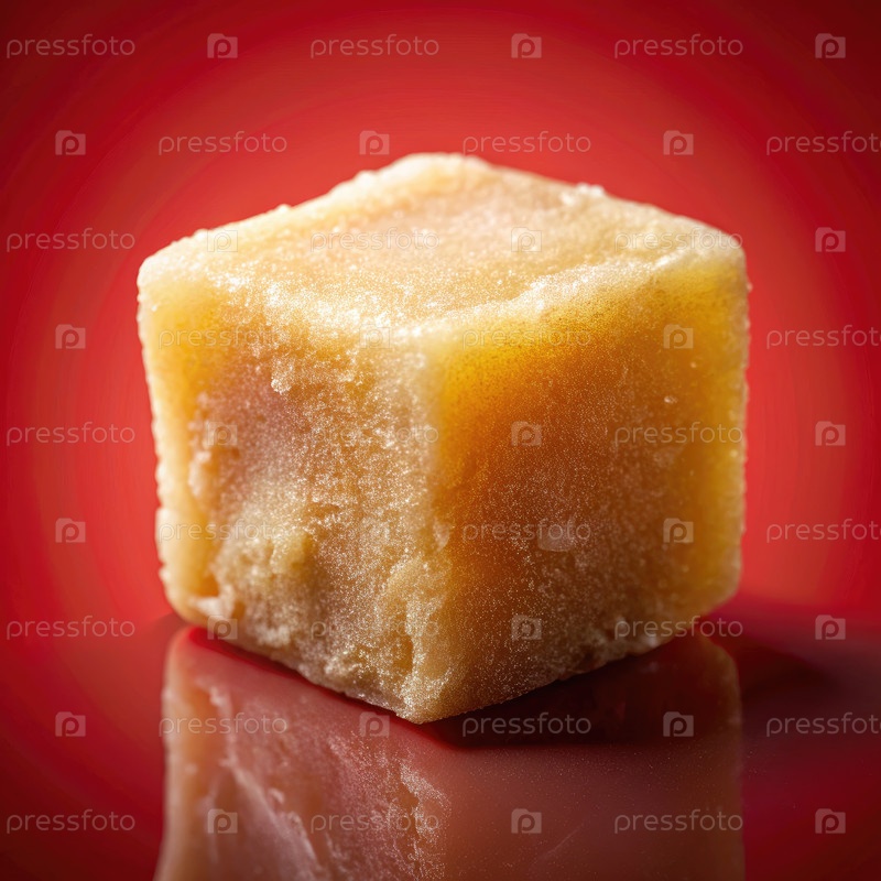 Куб замороженного пюре из имбиря, измеренный на стандартной шкале с красными полосками