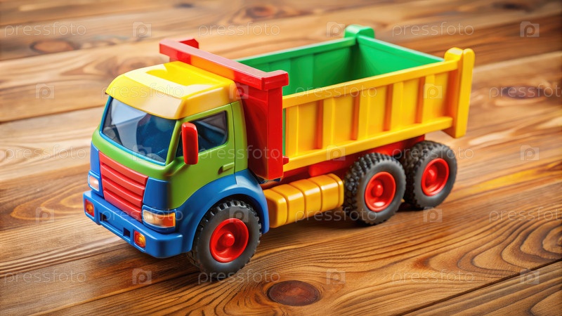 Красочный грузовик с игрушками на деревянном полу для творческого игрового времени и веселых приключений